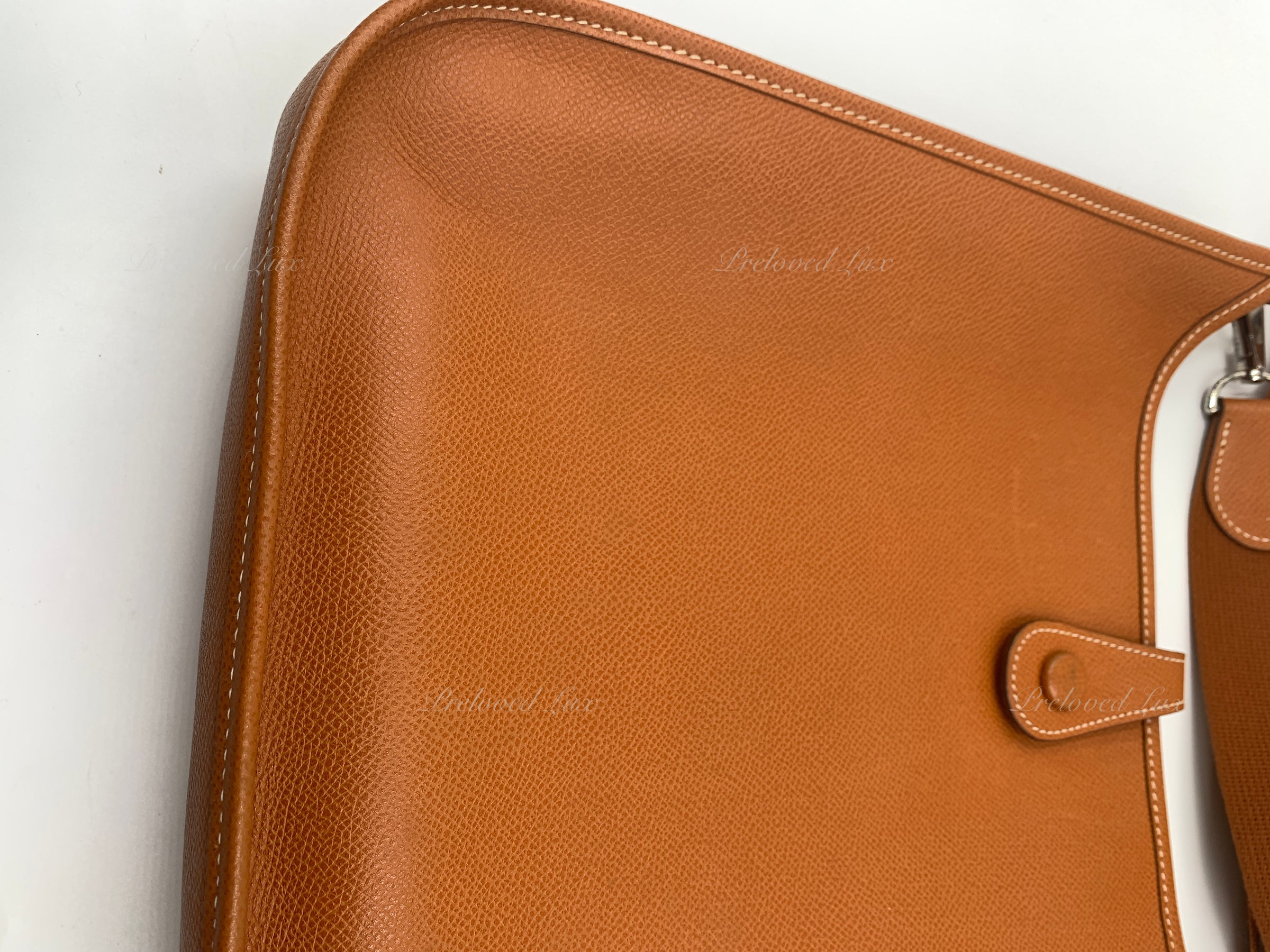 Brown Color (Hermes "Gold" color - iconic Hermes tan/camel), Silver Hardware (Palladium-plated silver tone) |