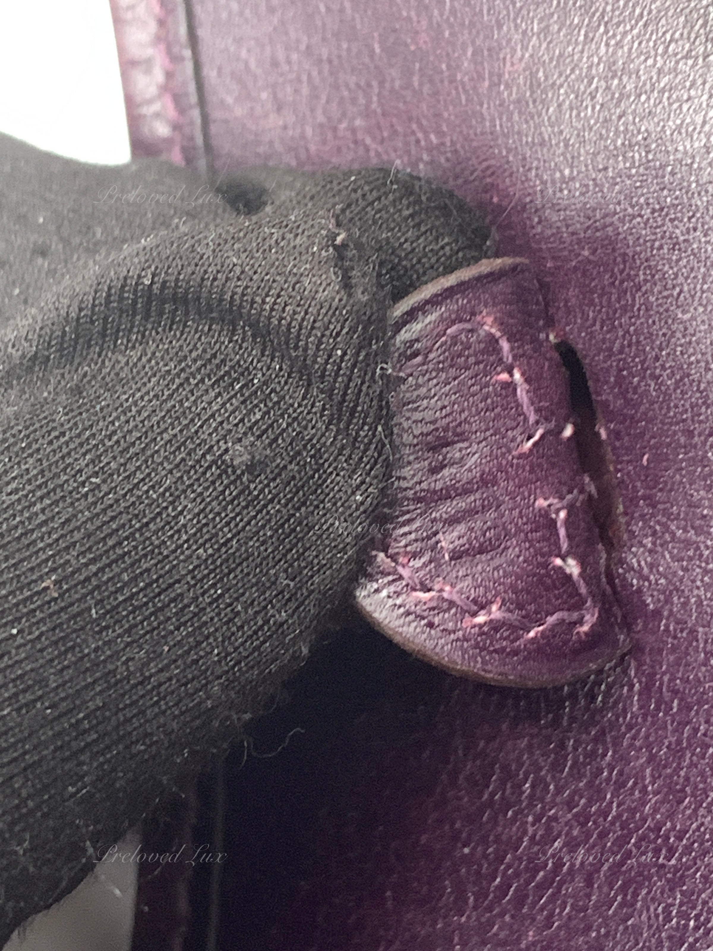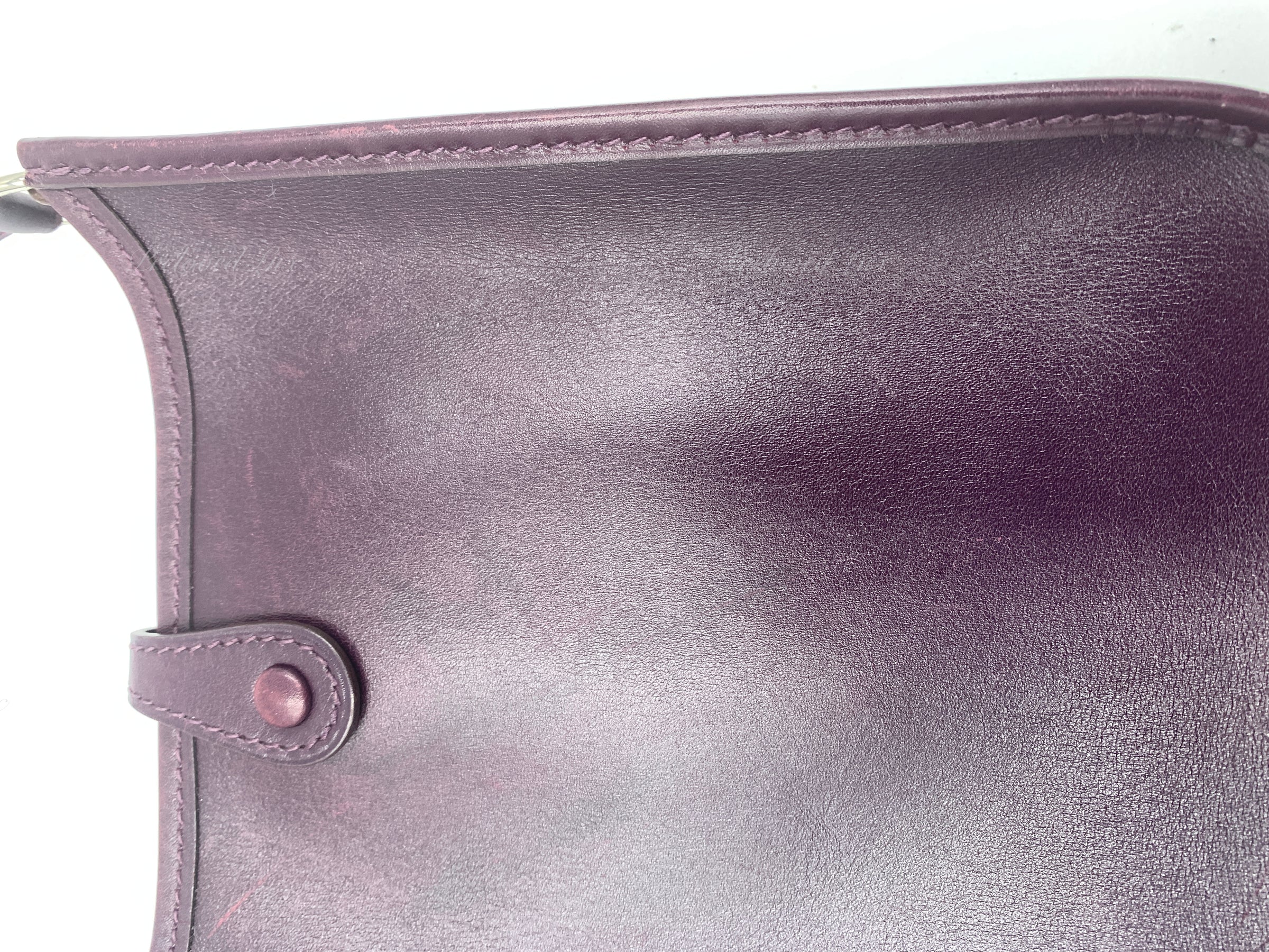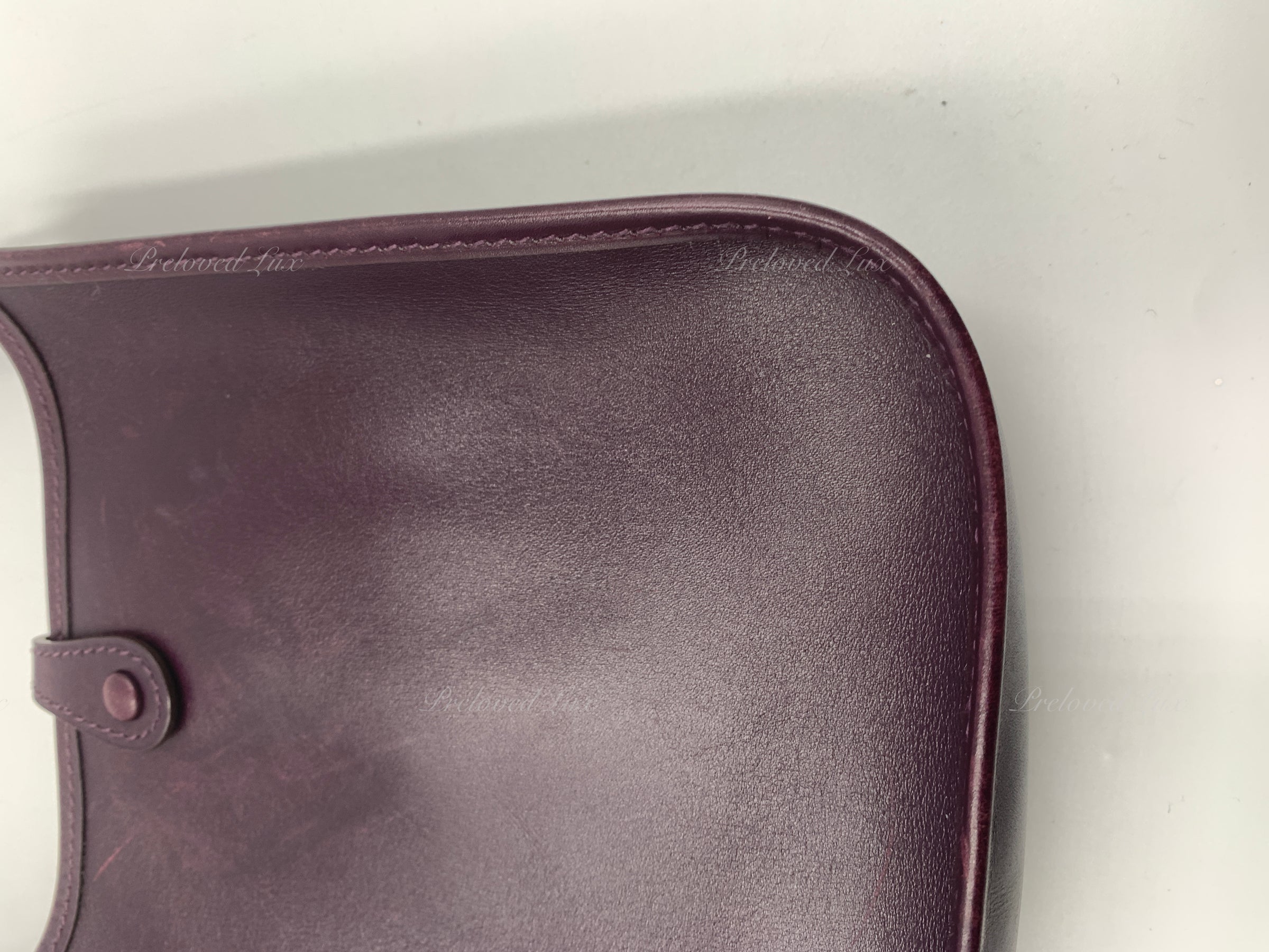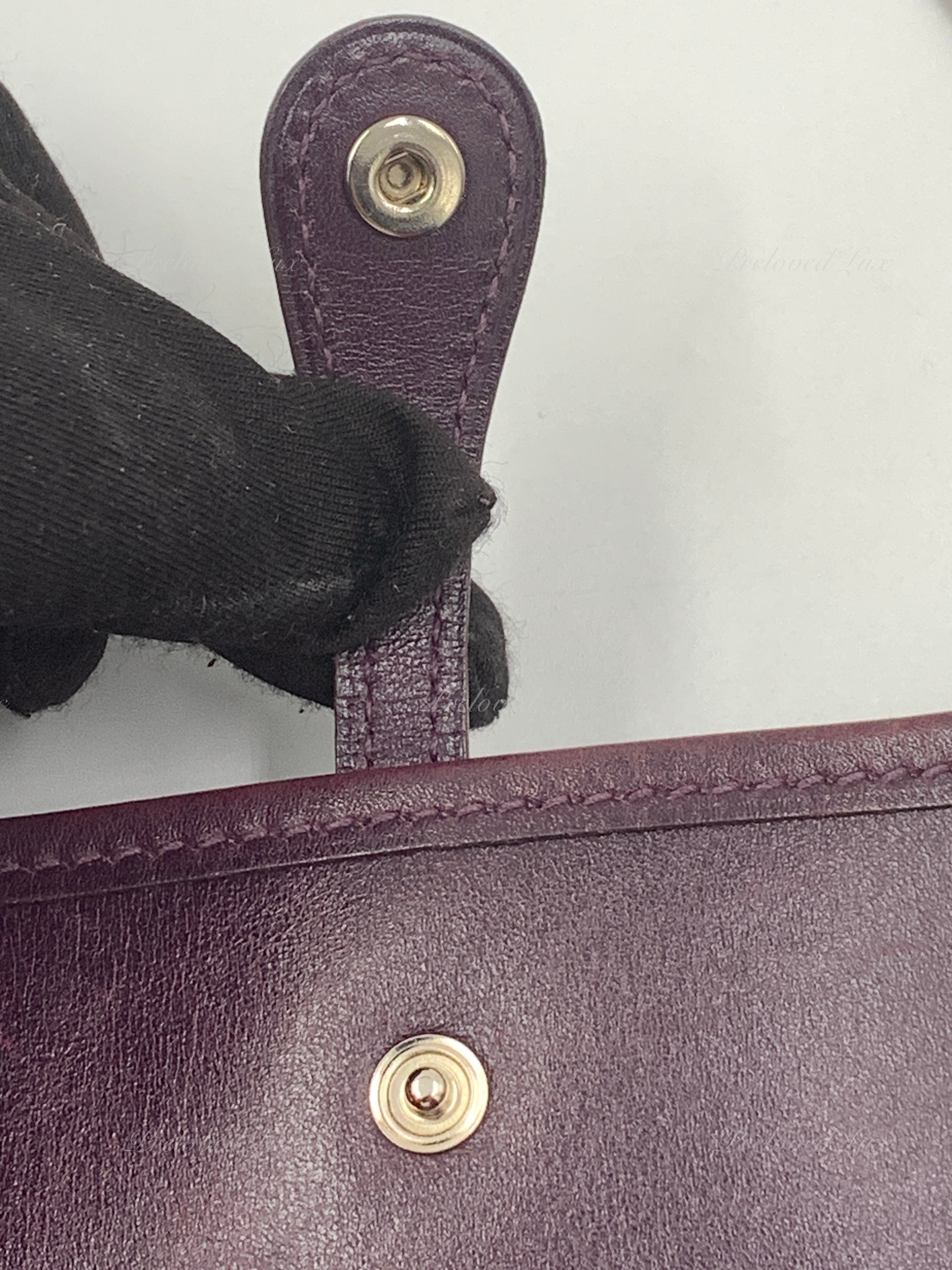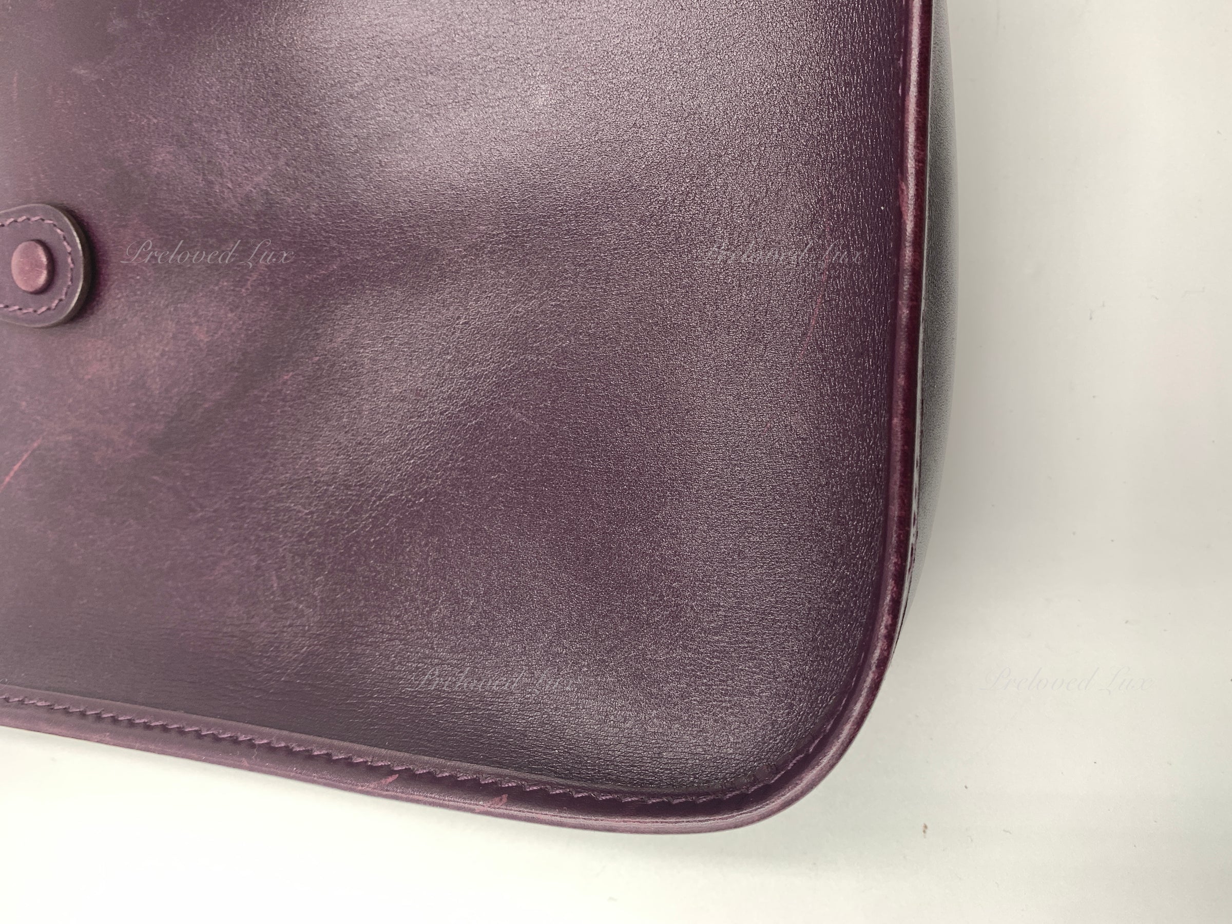 Outside: Pre-owned good condition. External box calf leather shows visible surface scratches, scuff. The color remains deep and rich. Corners / edges/ pipping with very mild unnoticeable rubs. Fine scratches on hardware Inside: Unlined raw suede interior is clean. No obvious stains noted. Strap: wrinkling, scratches and rub on leather strap although not noticeable. Button: working normally. Odor: No odor detected. Video: |